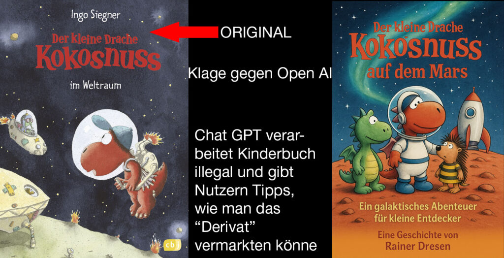 Der kleine Drache Kokosnuss“ des Autors und Illustrators Ingo Siegner ist offensichtlich in der Kinderbuchszene ein Dauerbrenner. Nachdem ChatGPT von OpenAI bereits auf einfache Eingaben „Inhalte aus urheberrechtlich geschützten Werken von Siegner in erkennbarer Form wiedergibt und sogar Illustrationen des kleinen Drachen mitliefert, die dem Original zum Verwechseln ähnlich sind“, wurde der Verlag aktiv und reichte am 27. März 2026 Klage beim Münchner Landgericht ein.