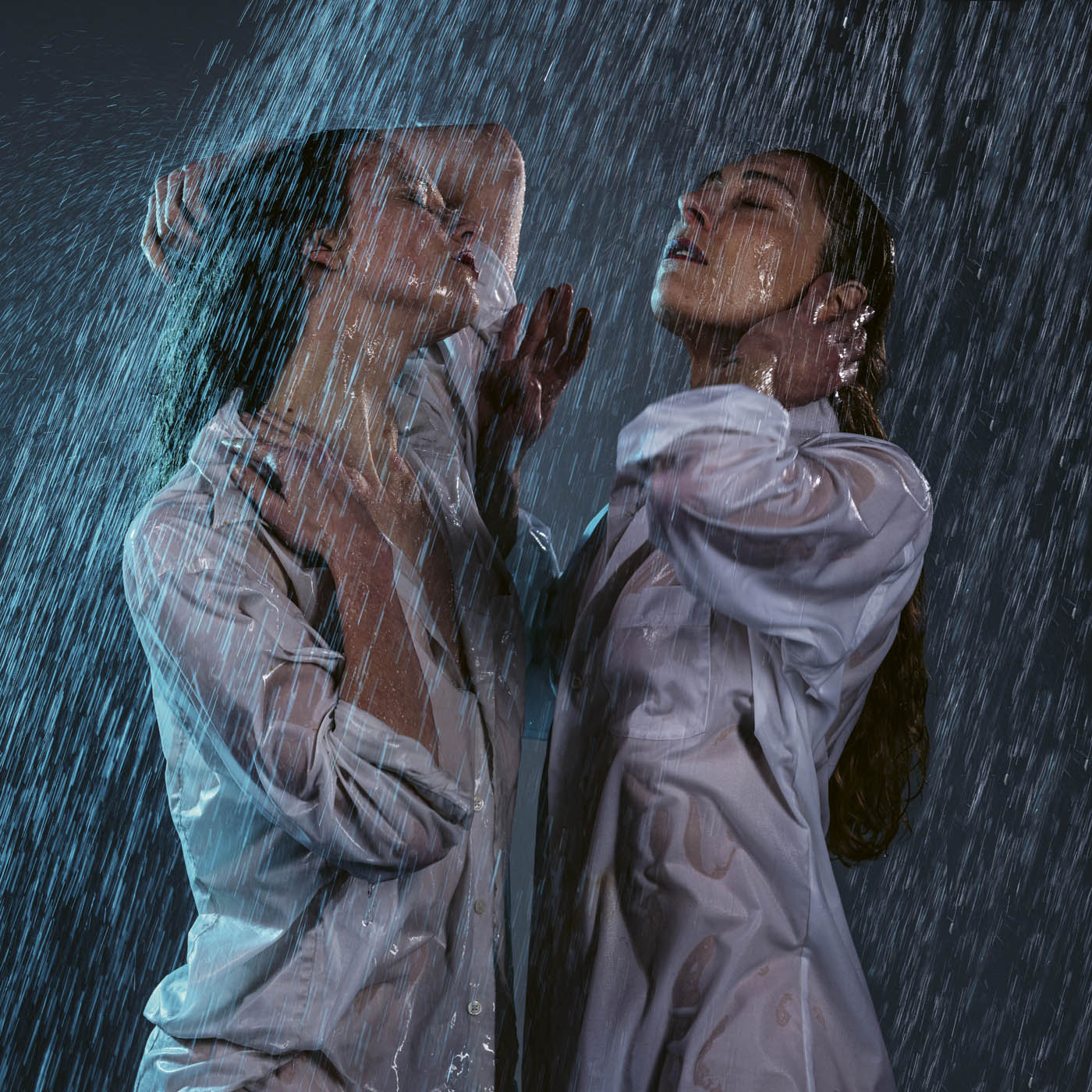 Zwei Models unter der Dusche fotografierte Frank Scheil (D) für seinen Beitrag zum Community-Portfolio. Allerdings verlangt die Inszenierung aufgrund der ähnlichen Kleidung einen sorgfältigen Blick, denn schließlich könnte auch ein Spiegelbild das Workshop-Thema gewesen sein.