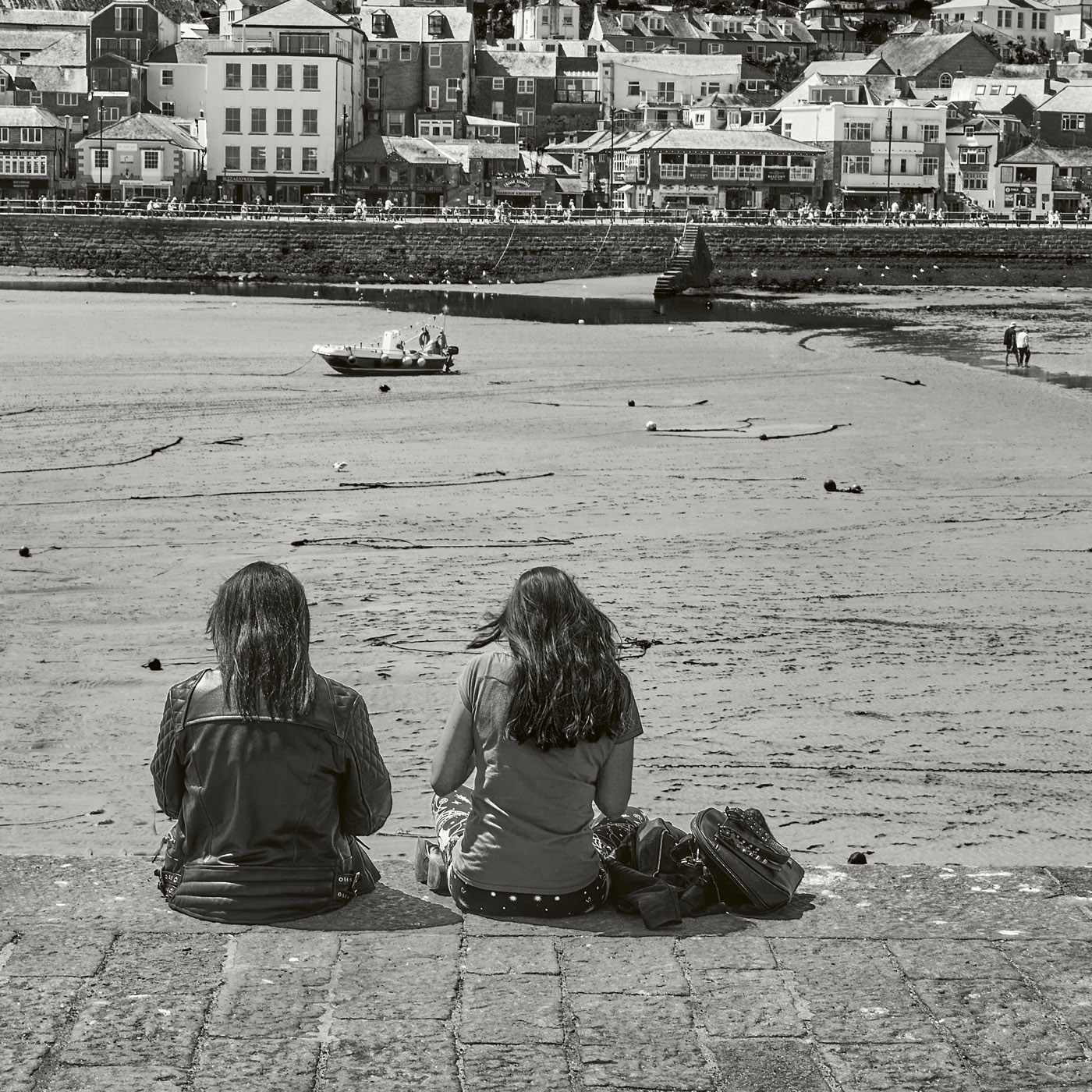 Sorgfältig beobachtet hat auch Hans-Joachim Klotz (D) eine Szene am Strand, an dem ein Paar vertraut beieinander sitzt und im Hintergrund ein weiteres Paar diese Zweisamkeit spiegelt.